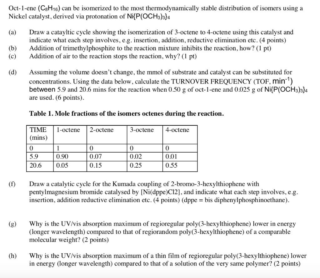 Oct-1-ene (C8H16) can be isomerized to the most | Chegg.com