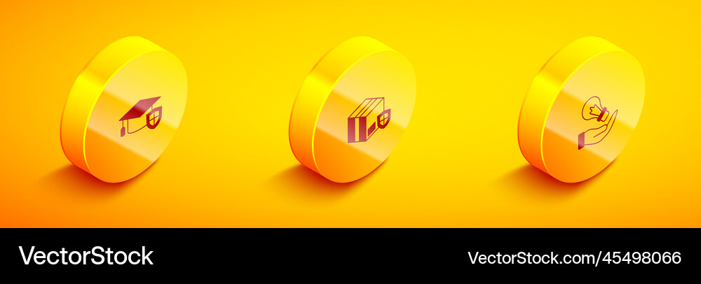 Set isometric graduation cap with shield delivery Vector Image