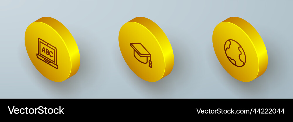 Set isometric line laptop graduation cap Vector Image