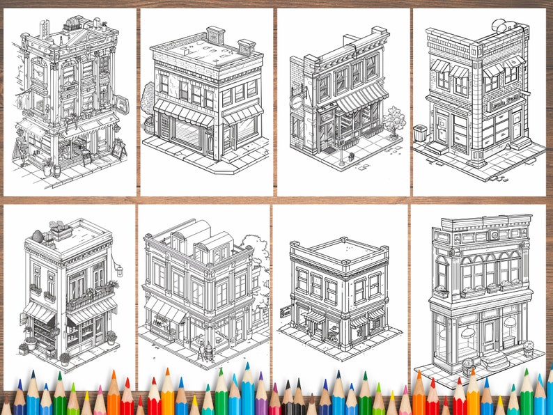 40 Isometric Vintage Storefront Coloring Books ,A4 Size Digital ...