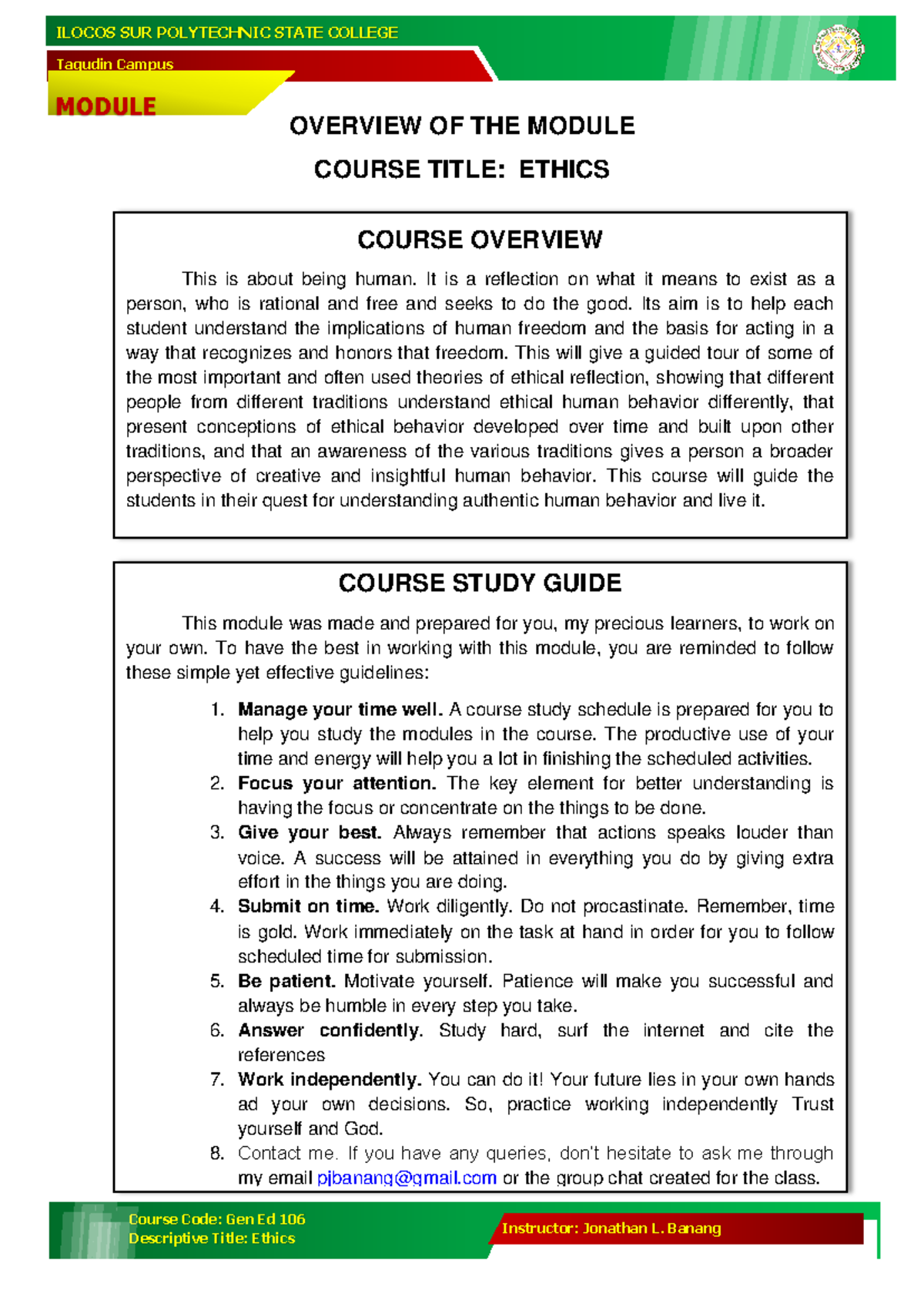 Ispsc Module on Ethics- Banang - bsba - Tagudin Campus Course Code: Gen ...