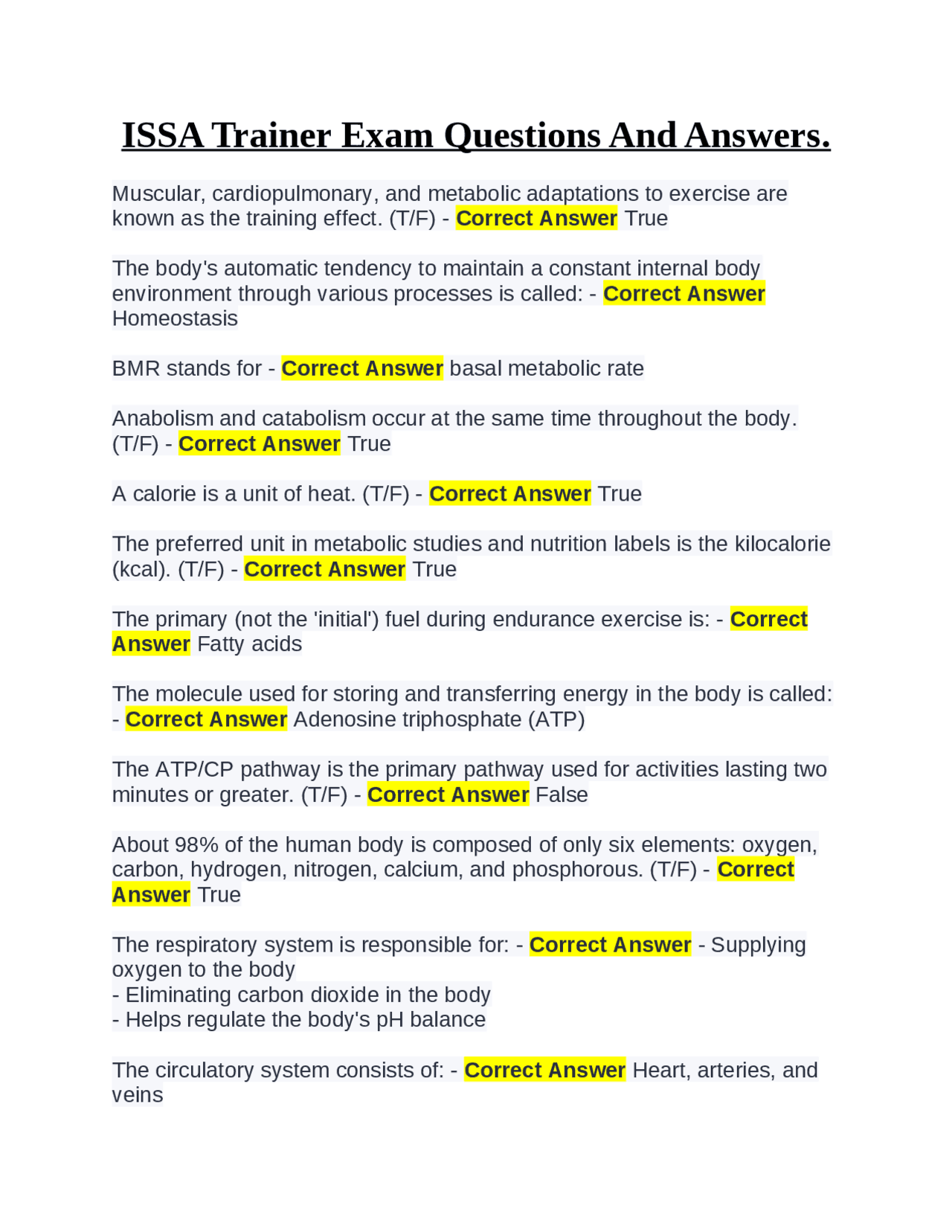 ISSA Trainer Exam Questions And Answers. | Exams Nursing | Docsity