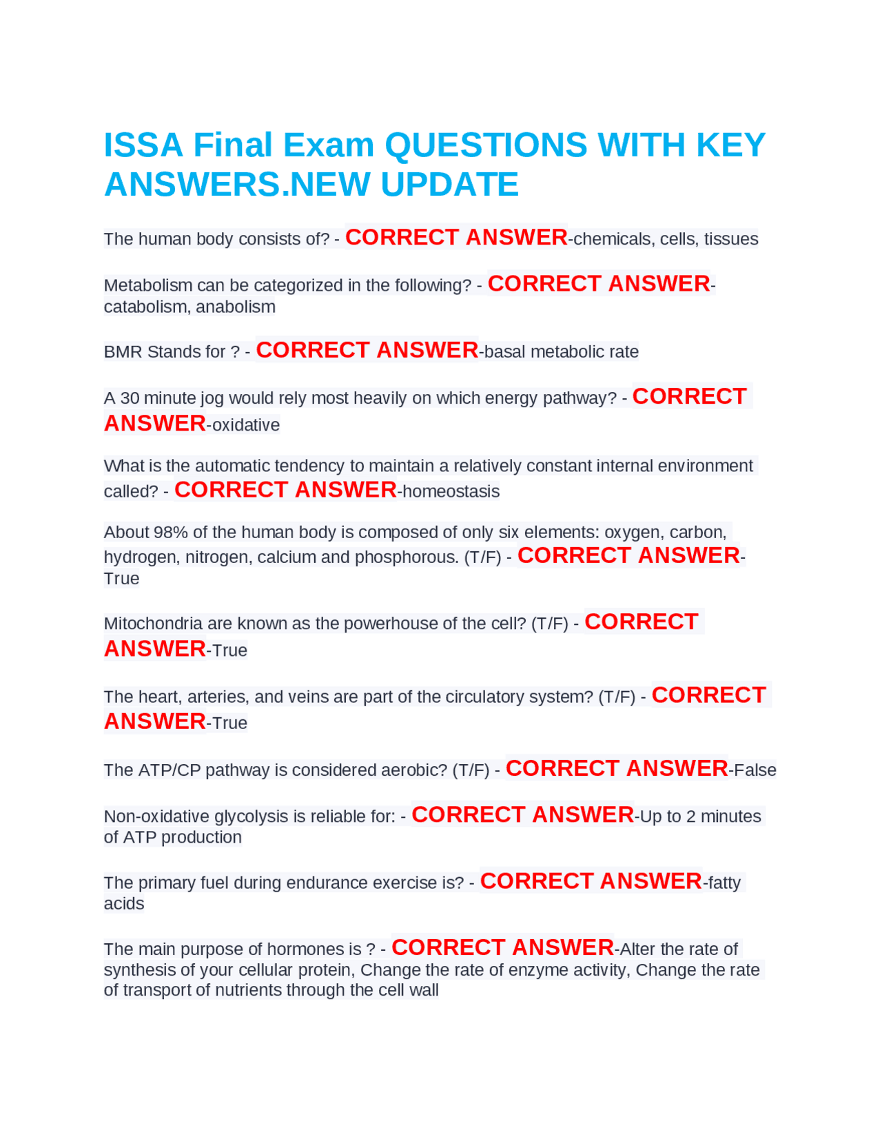 ISSA Final Exam QUESTIONS WITH KEY ANSWERS.NEW UPDATE | Exams Nursing ...