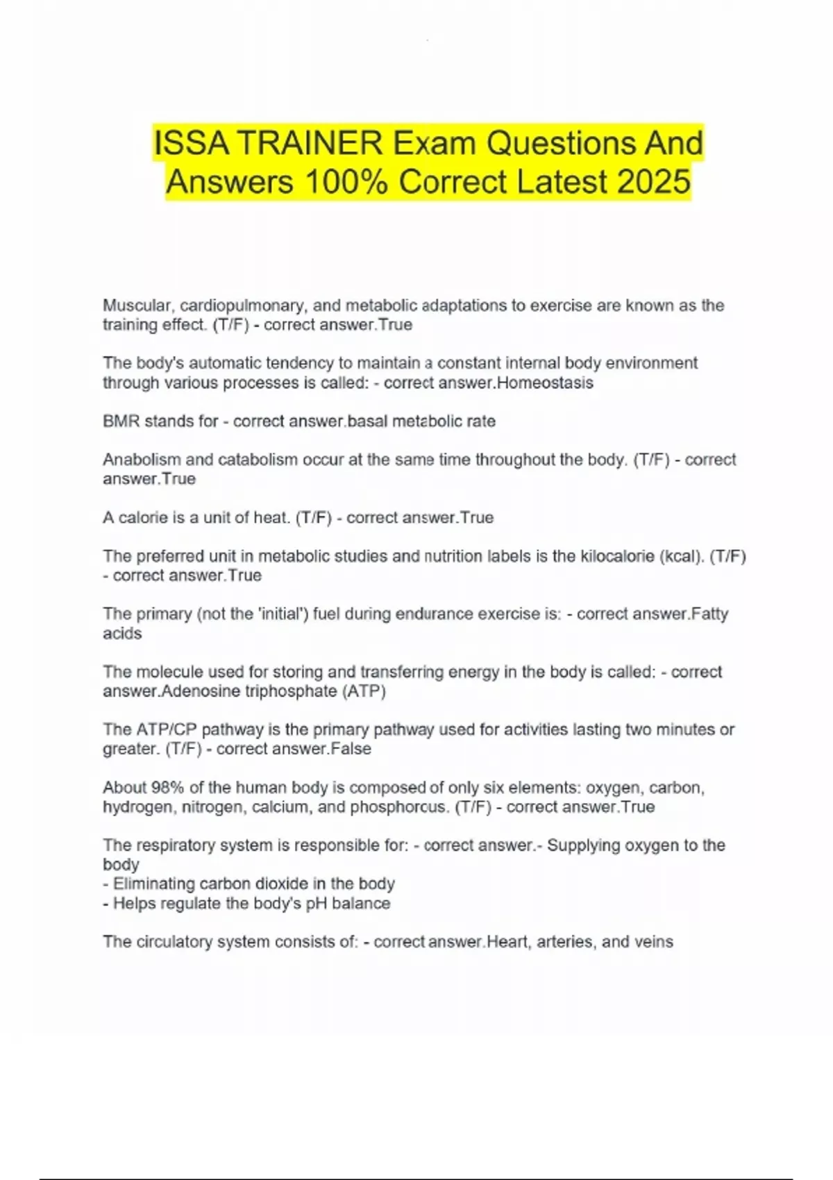 ISSA TRAINER Exam 2025 (Questions With Verified Answers) Graded A+ ...
