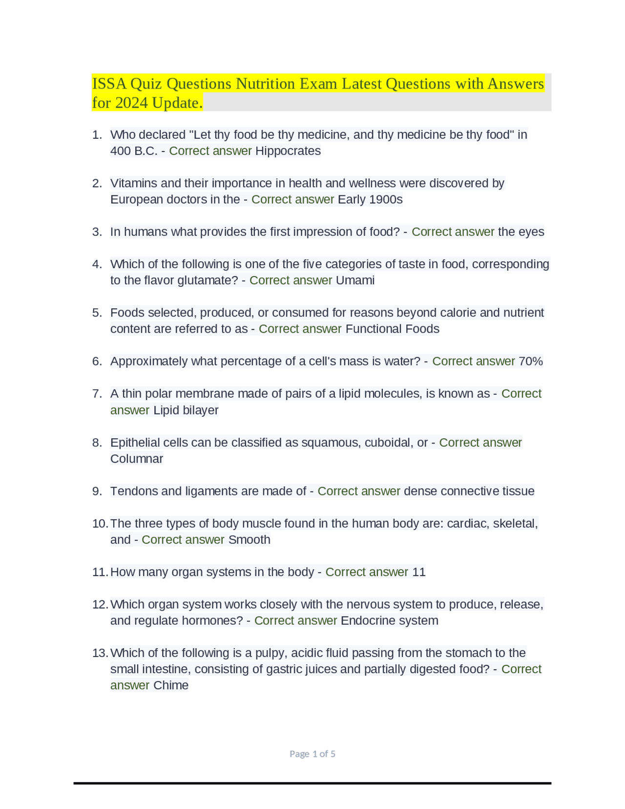 SOLUTION: Issa quiz questions nutrition questions and answers latest ...