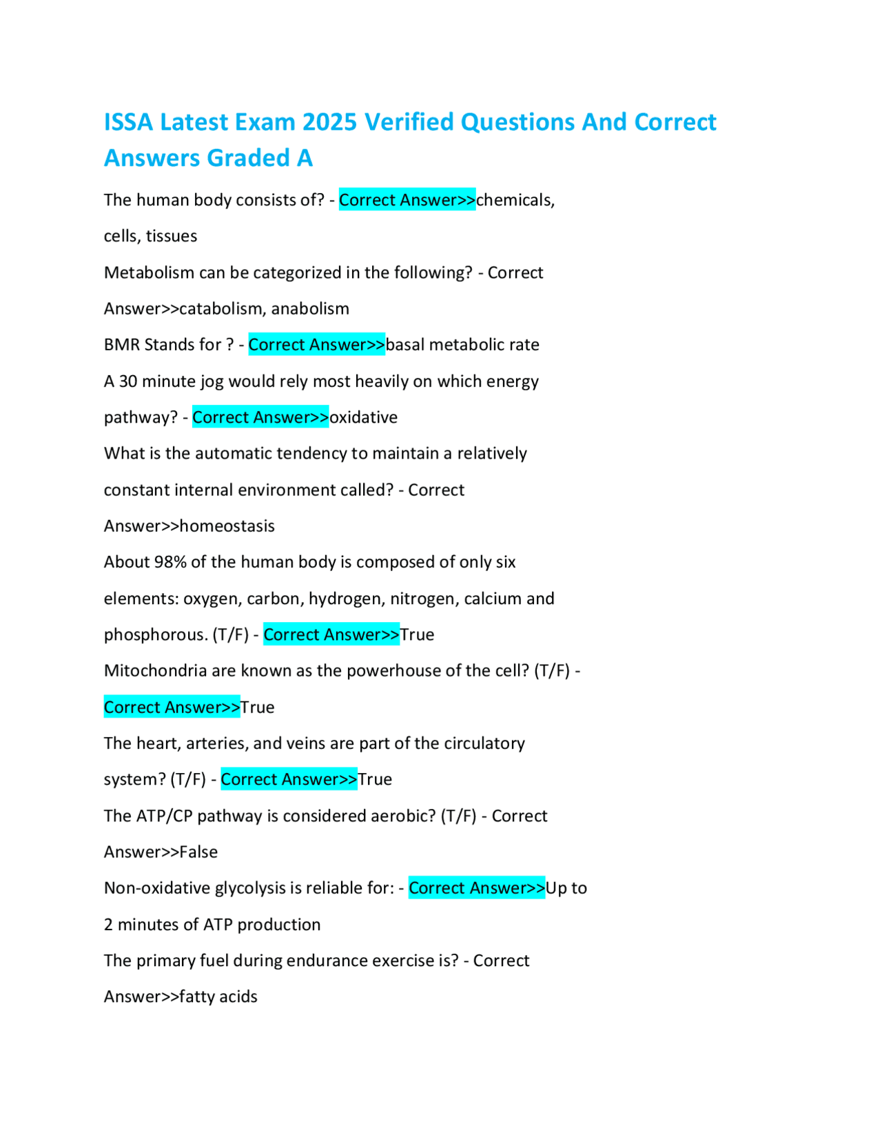 ISSA Exam Questions and Answers: Human Anatomy, Physiology, and ...