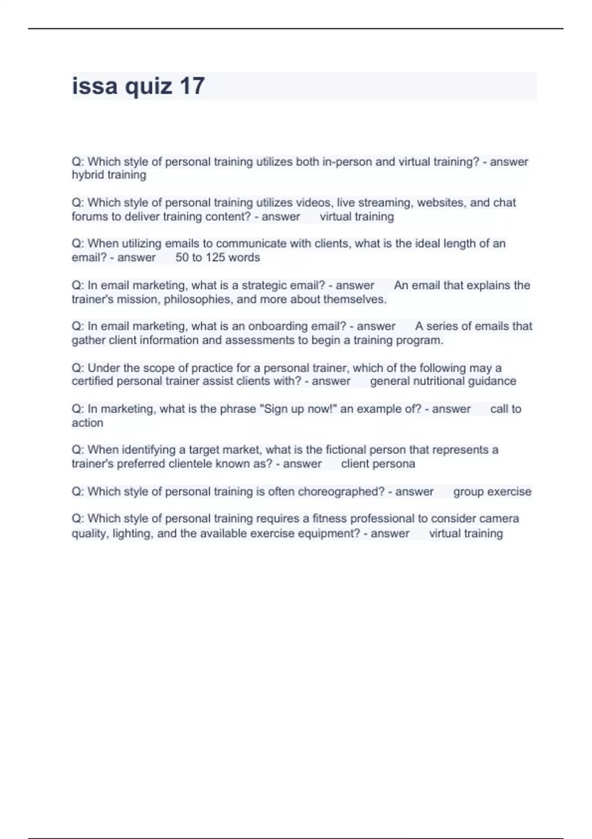 ISSA Quiz (Answers) questions with all correct answers - ISSA - Stuvia US