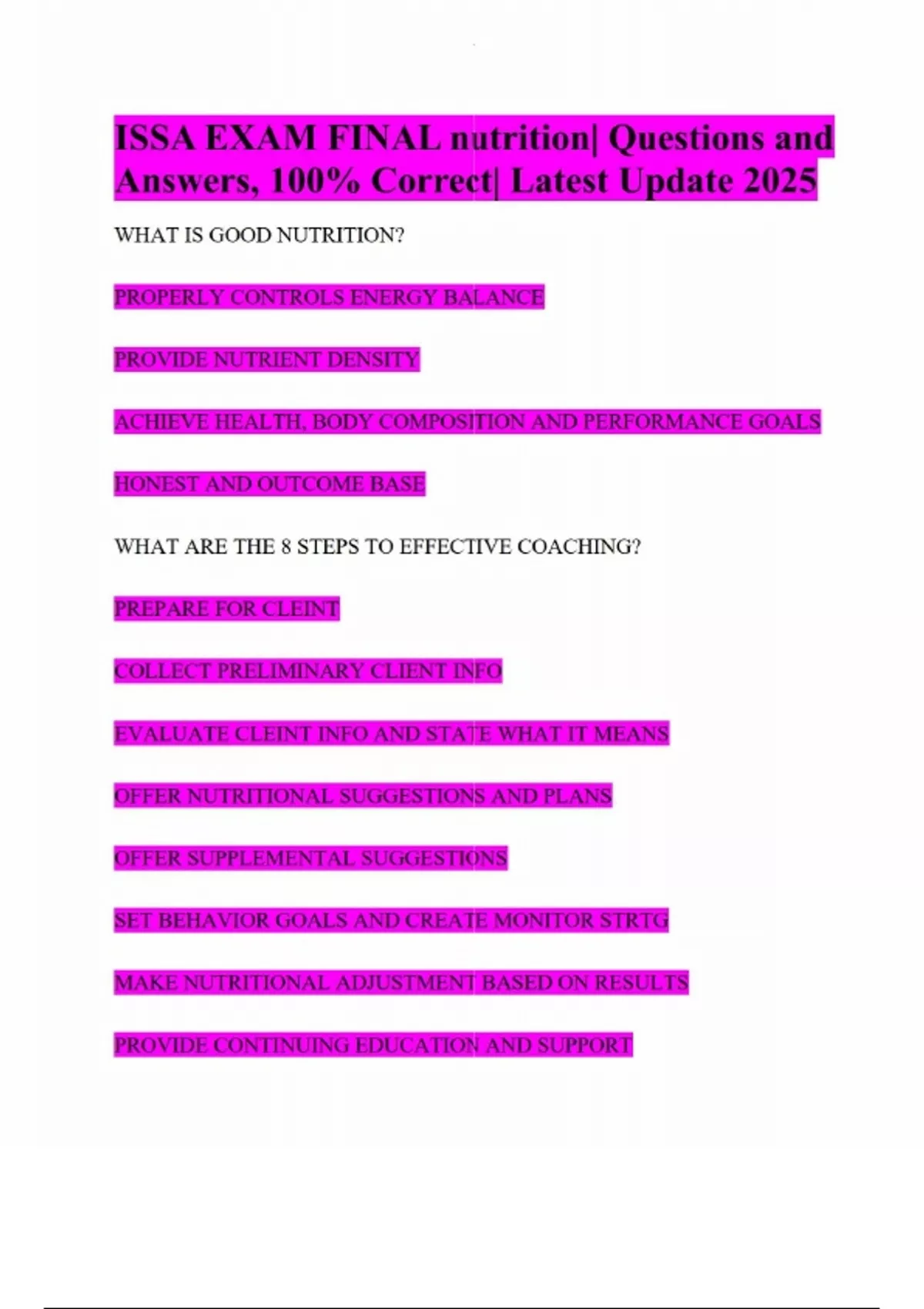 ISSA EXAM FINAL Nutrition Questions with 100% Correct Solutions - ISSA ...