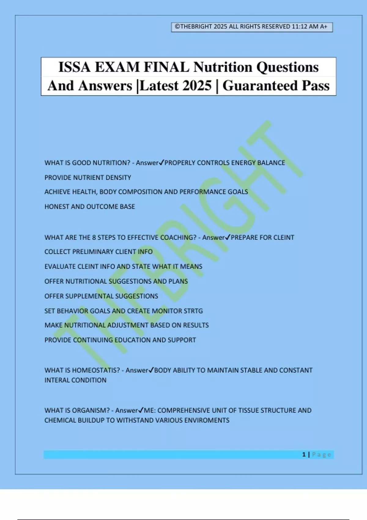 ISSA FINAL EXAM PAGE 1 QUESTIONS AND ANSWERS LATEST 2024 UPDATE - ISSA ...