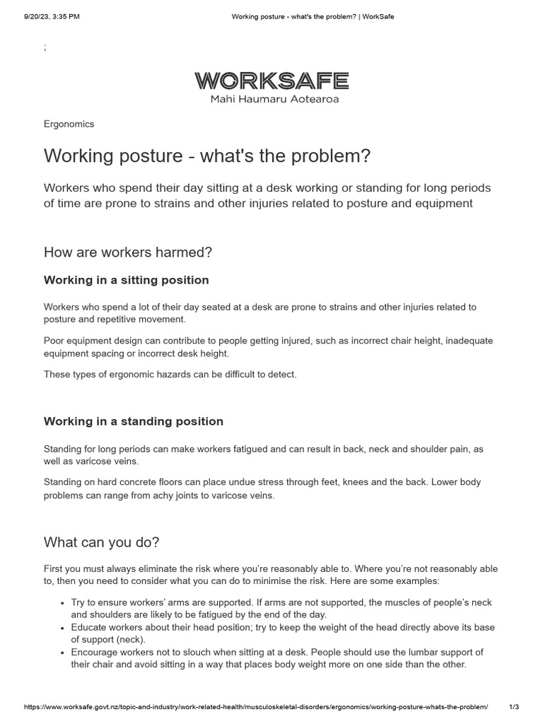 Working Posture - What's The Problem - WorkSafe | PDF | Human Factors ...