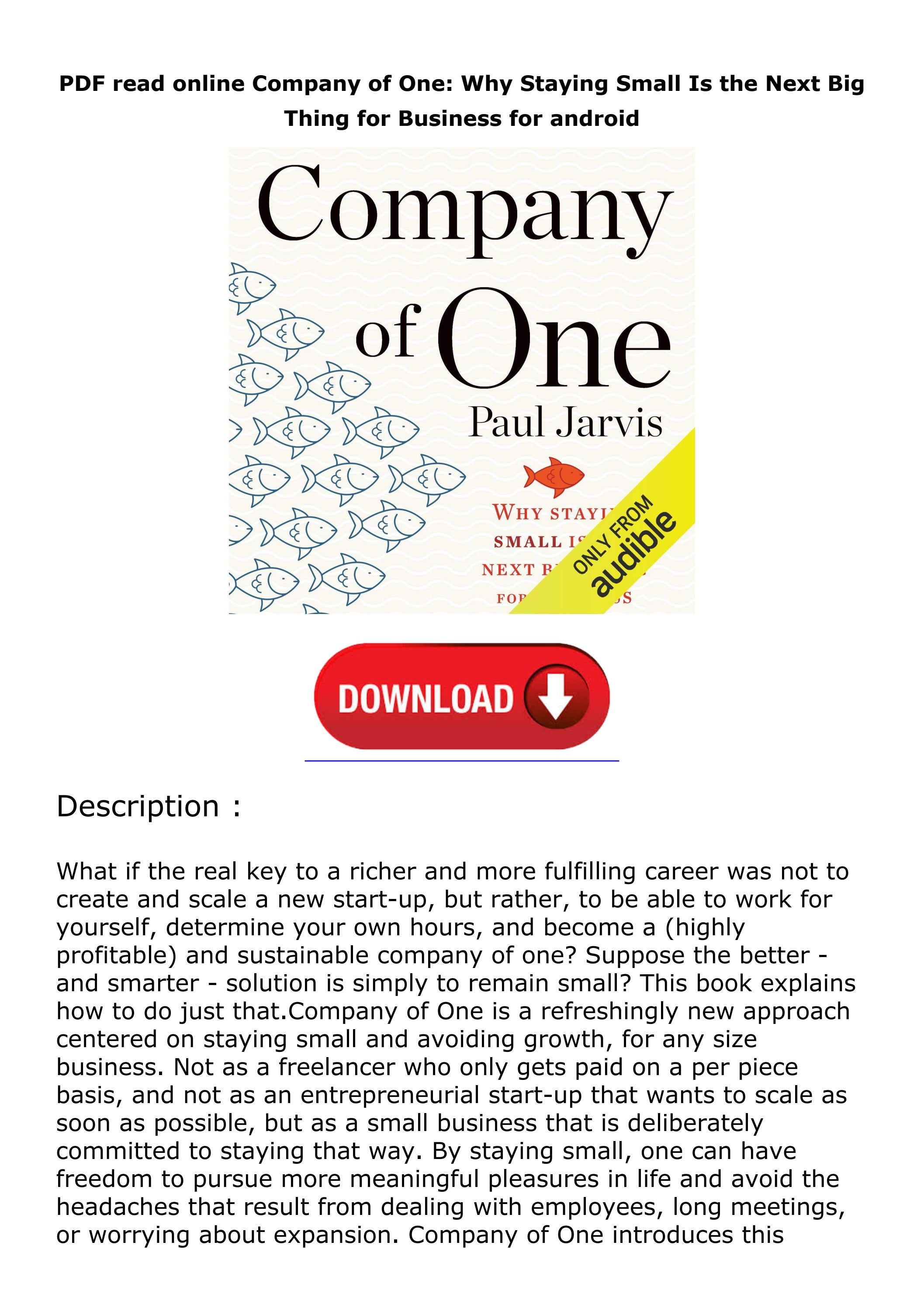 PDF read online Company of One: Why Staying Small Is the Next Big Thing ...