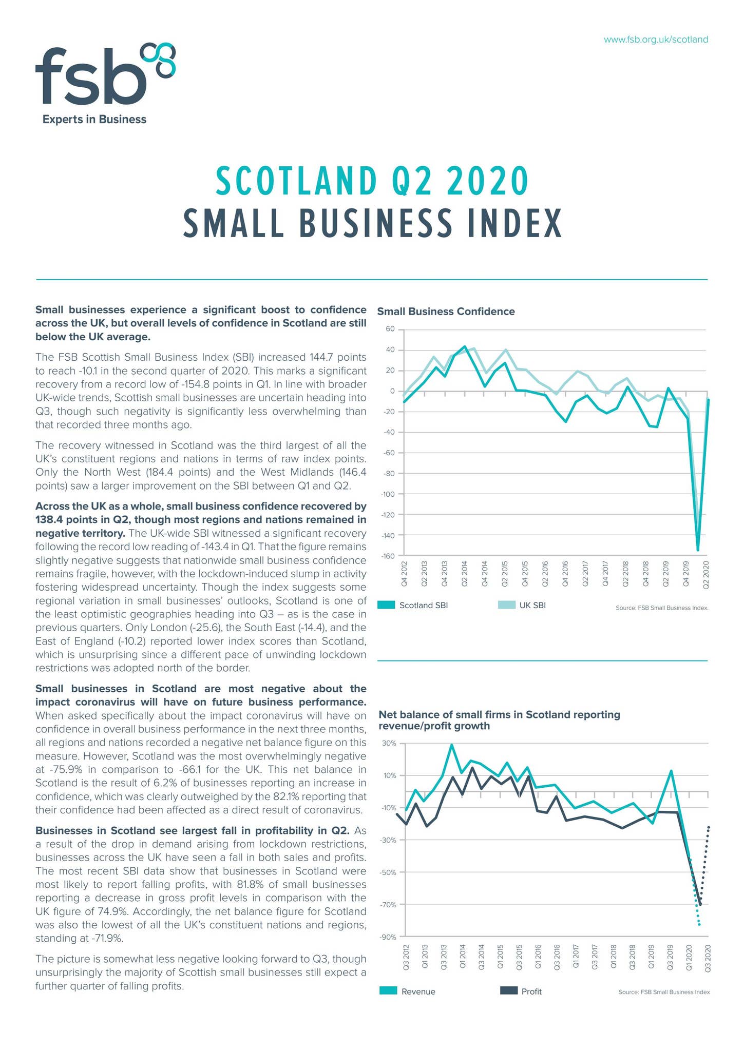 FSB Scotland Small Business Index, Q2, 2020 by Federation of Small ...