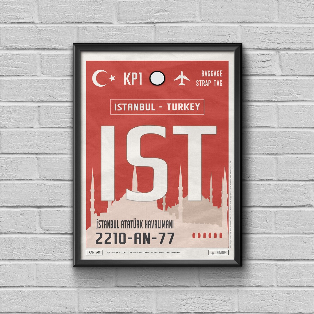 Istanbul Airport Tag, Turkey Travel Poster, IST Airport Code, Istanbul ...
