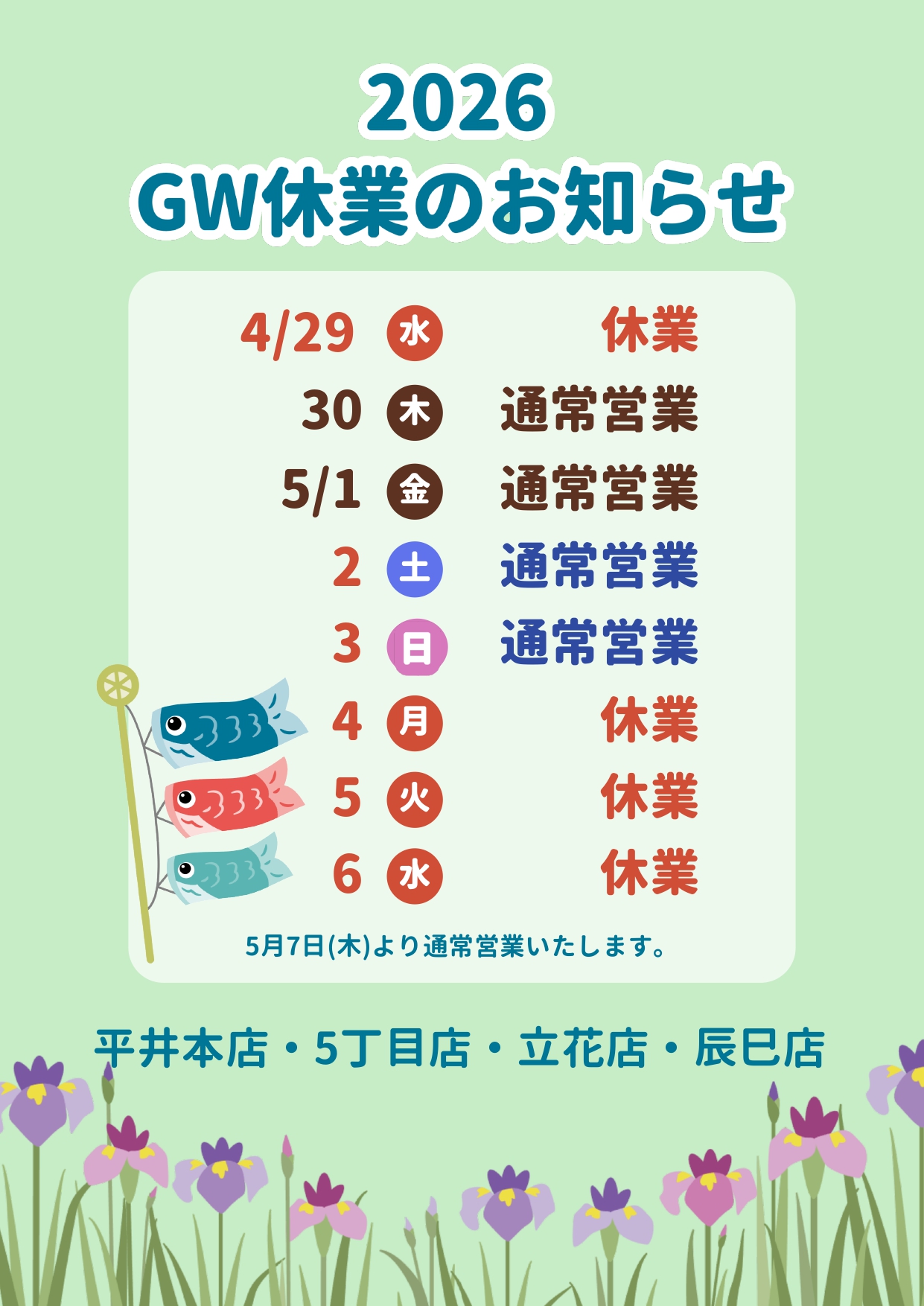 【GW休業のお知らせ】 - いすずクリーニング