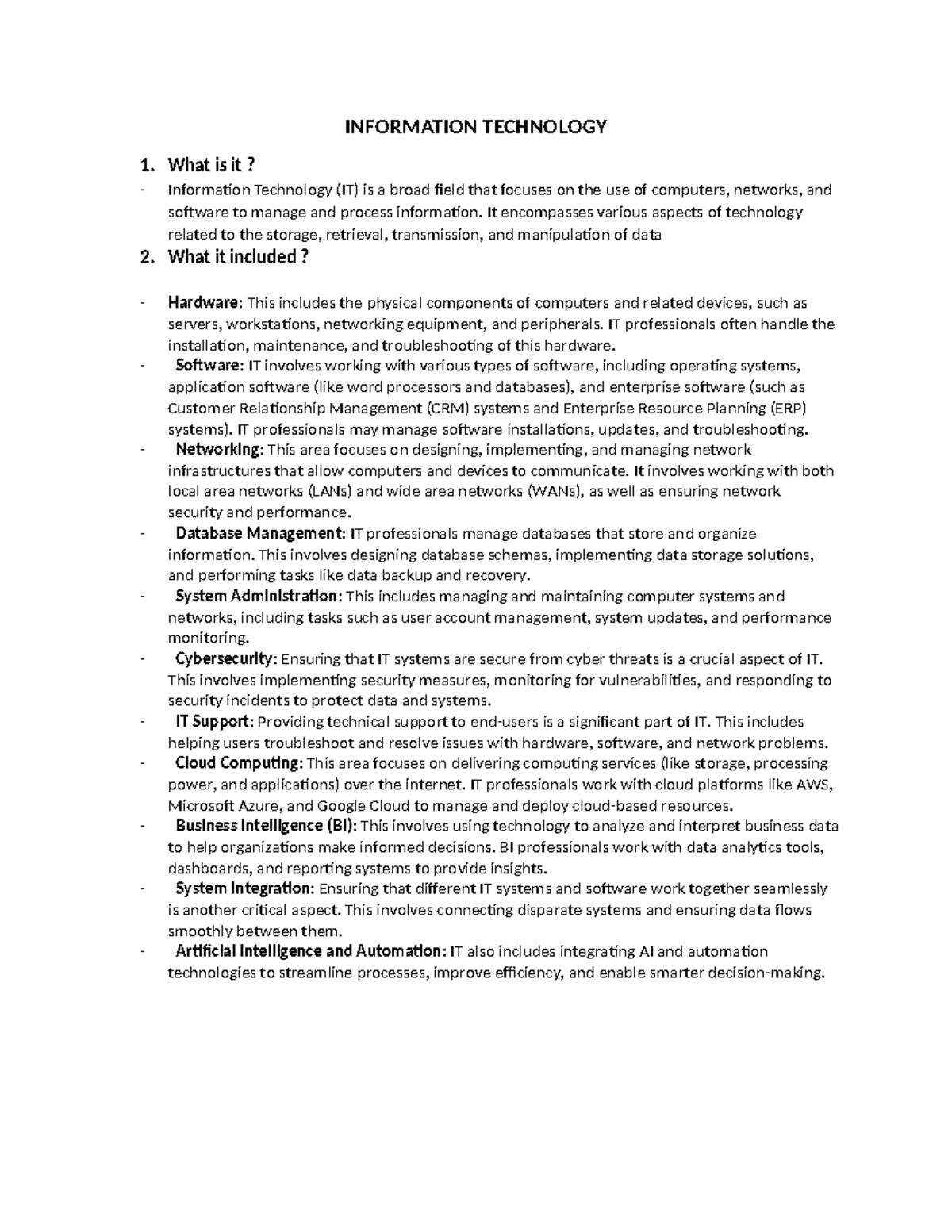 Introduction to IT - Information technology (IT) is a system comprising ...