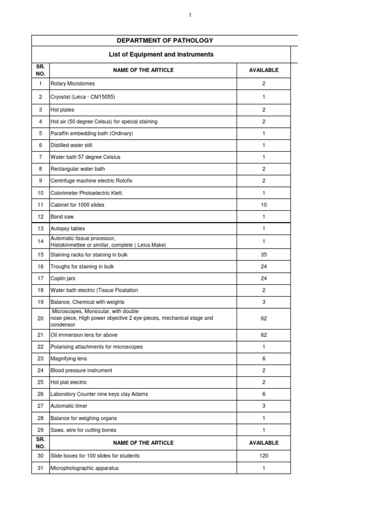 Pathology Equipment List Pdf at Chelsea Frome blog