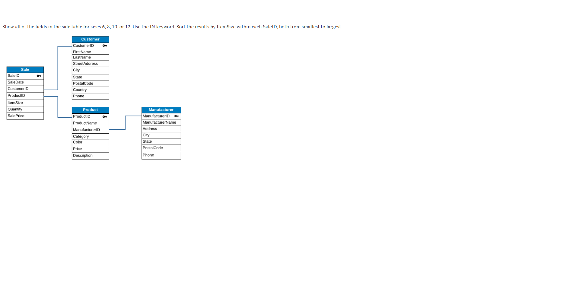 Solved Show all of the fields in the sale table for sizes | Chegg.com