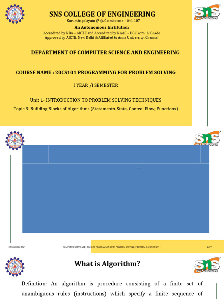 Building Blocks of Algorithms (Statements, State, Control Flow ...