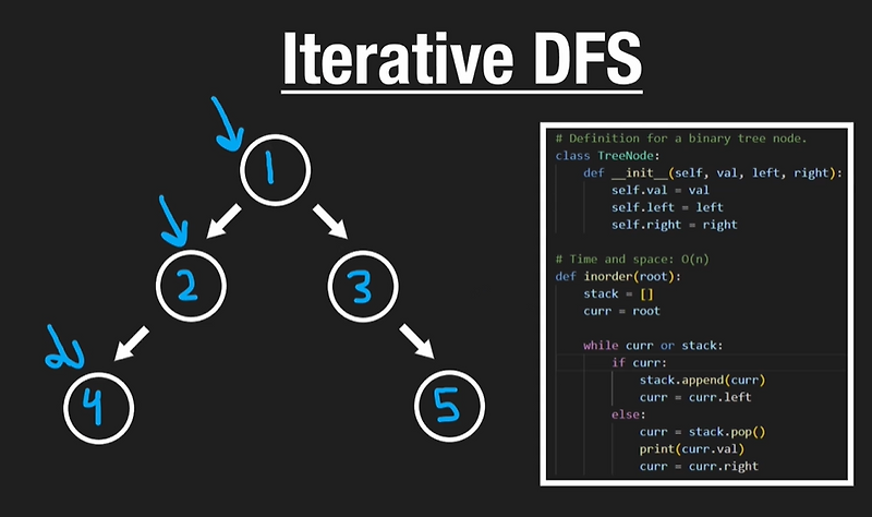 binary tree - How does iterative DFS traverse back? - Stack Overflow
