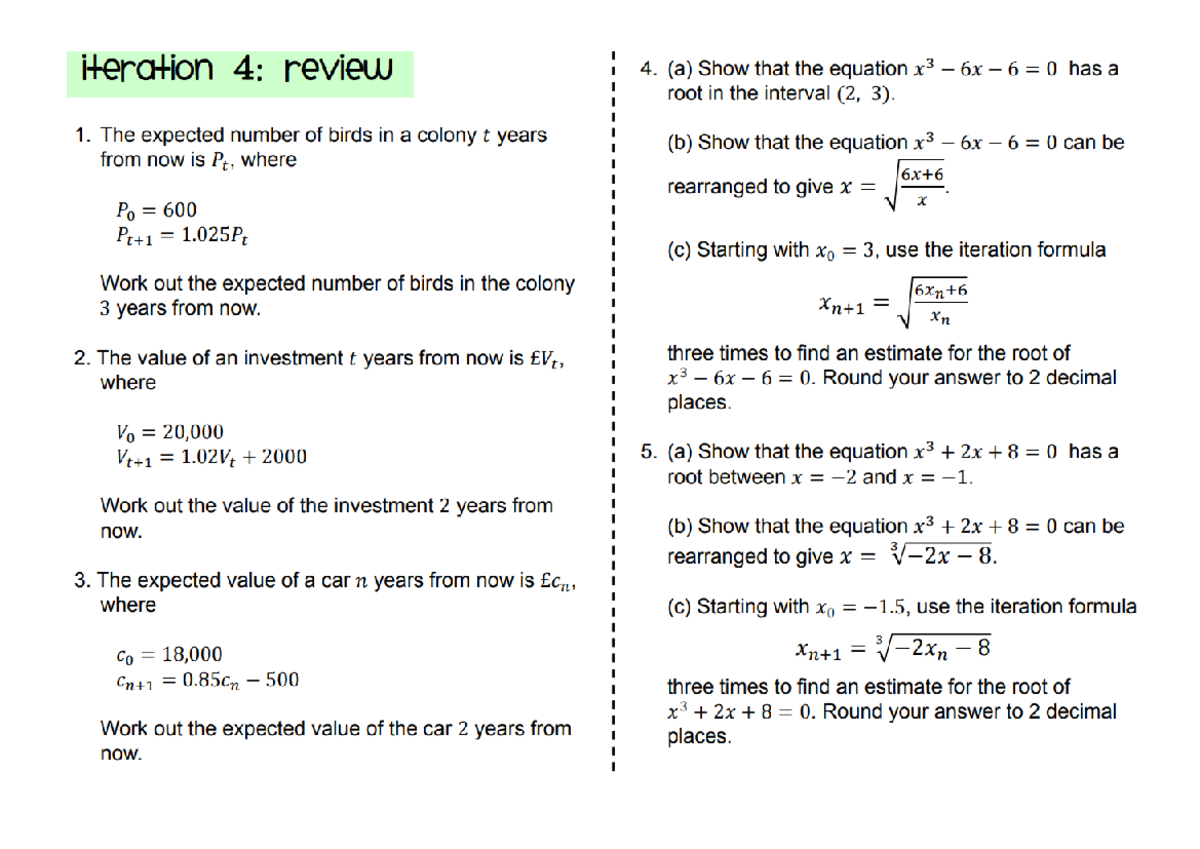 Iteration Techniques in Maths: Review 4 - Studocu