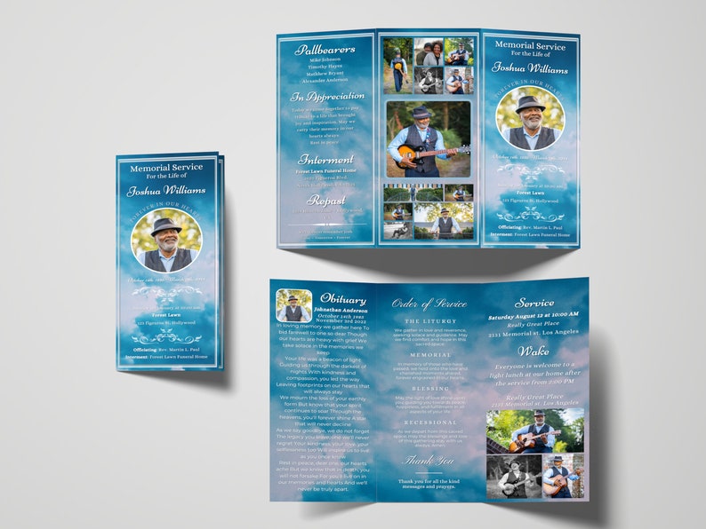 Funeral Program Tri-fold Brochure - Dark Blue Sky Template - Instant ...