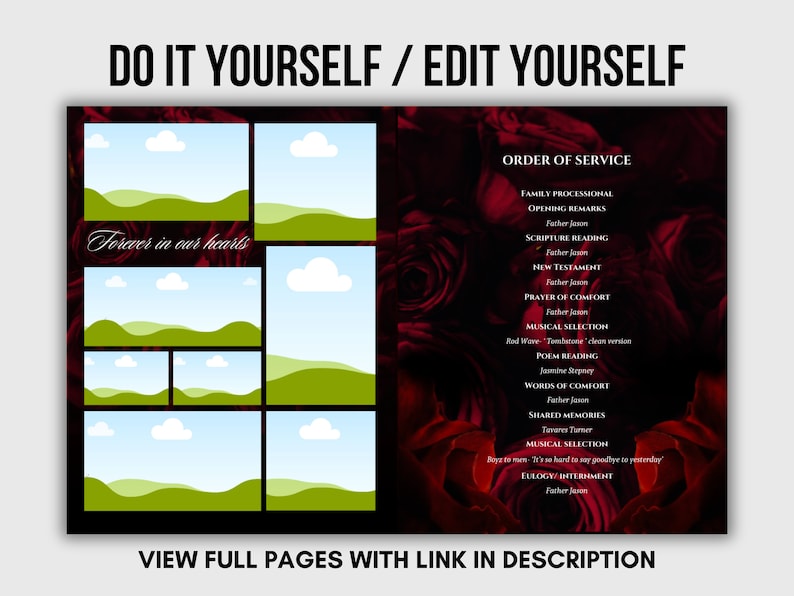 Red Rose Funeral Program Template: Celebration of Life (digital ...