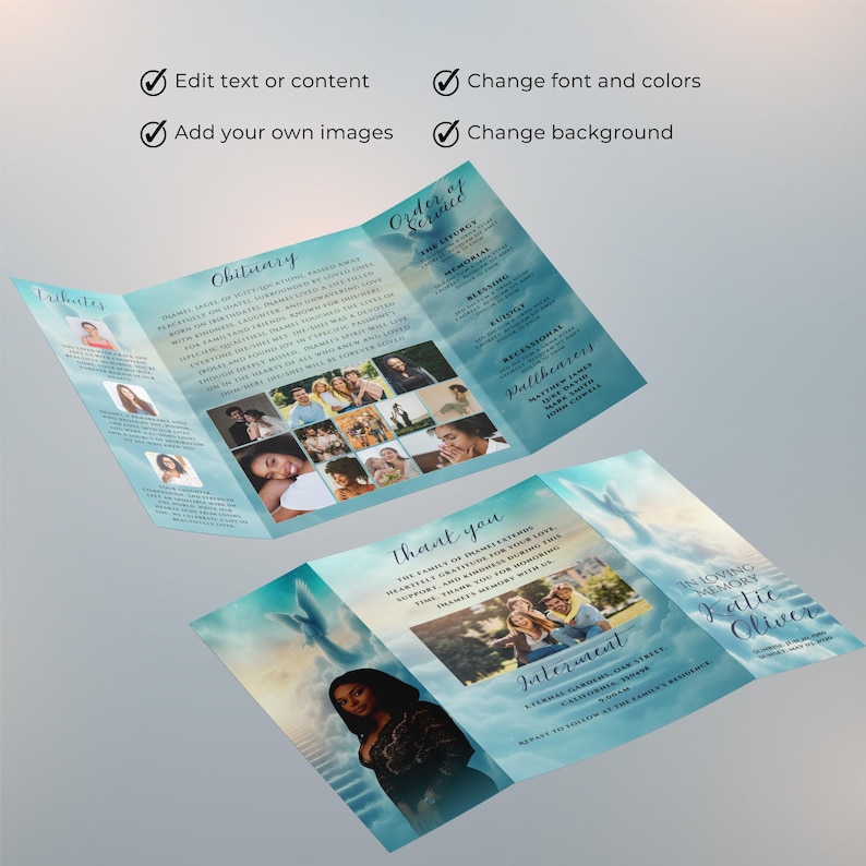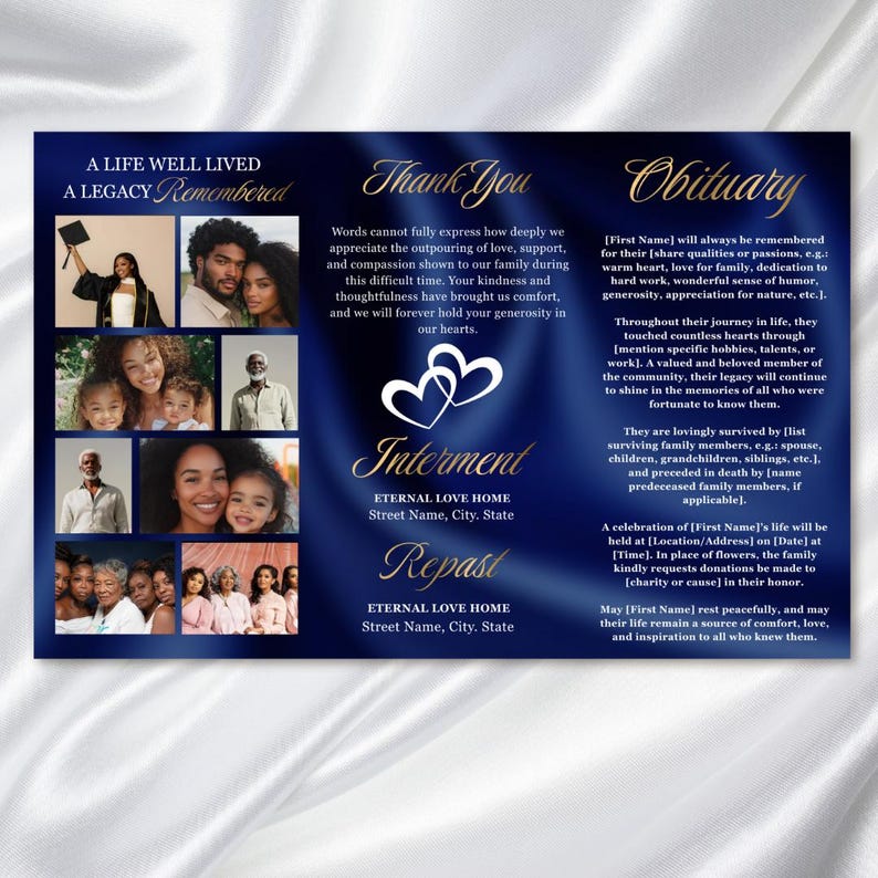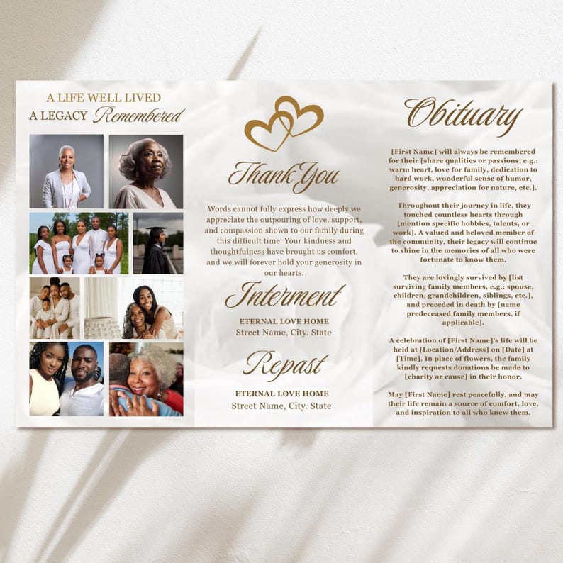 Trifold Funeral Program Template for Canva, in Loving Memory, Obituary ...