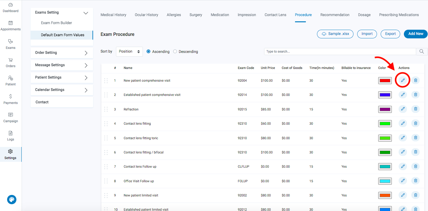 Color code appointments / exam procedures to display in the calendar ...