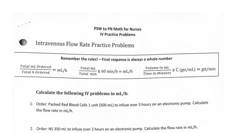 PSW to PN Math for Nurses IV Flow Rate Practice Problems - Studocu