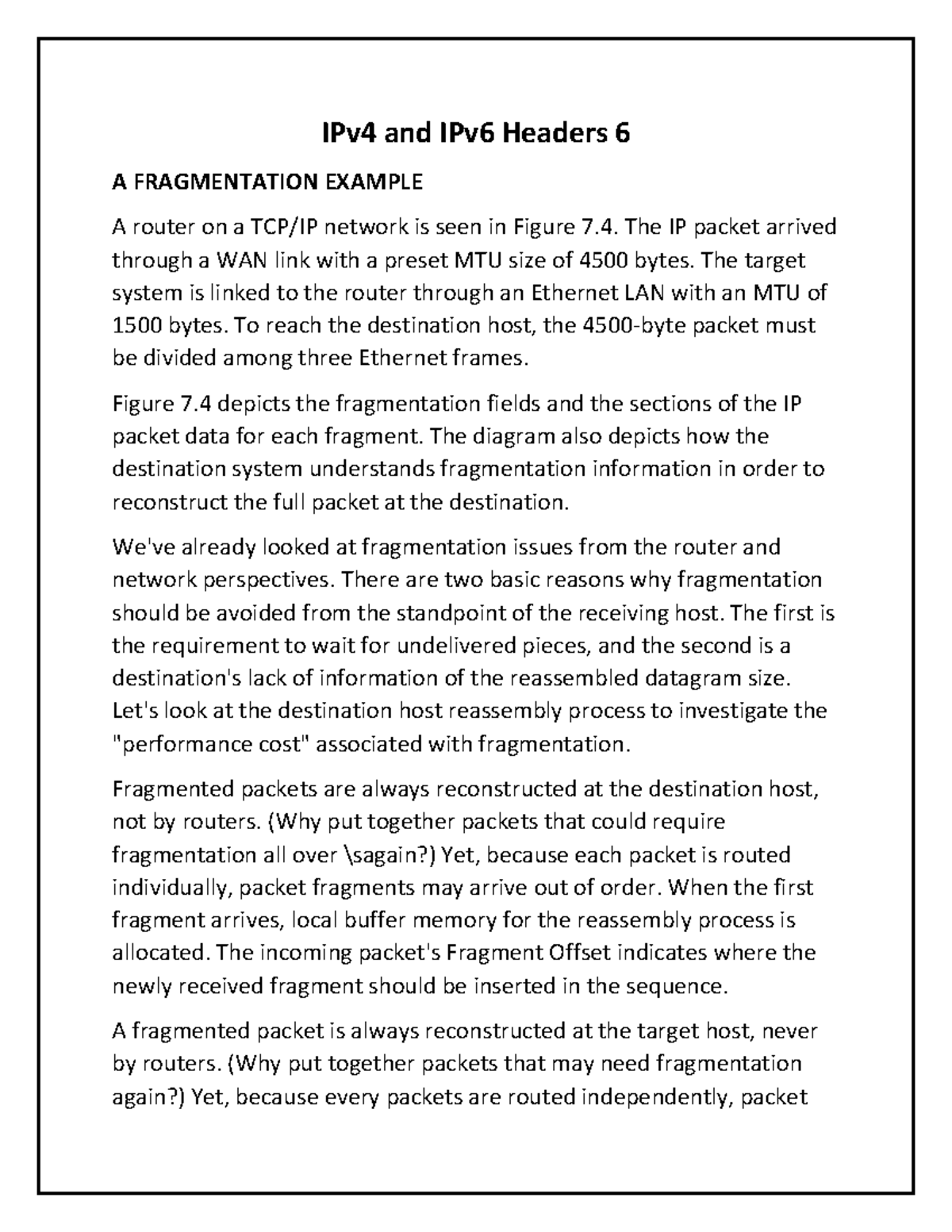 IPv4 and IPv6 Headers 6 - The IP packet arrived through a WAN link with ...