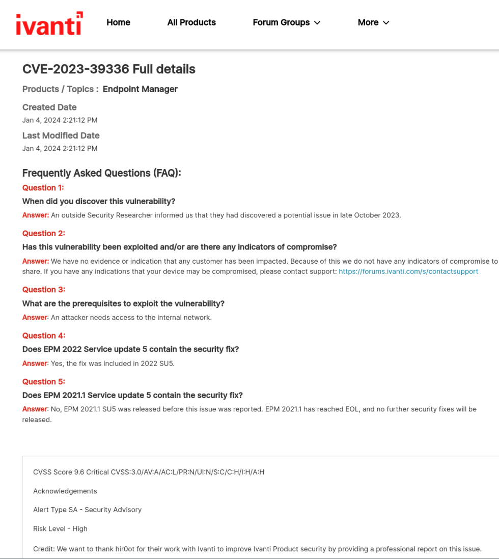Multiple High-Risk Vulnerabilities in Ivanti Endpoint Manager Affecting ...