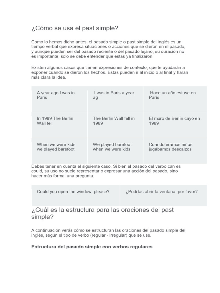 Pasado Simple en Ingles | PDF | Verbo | Sintaxis