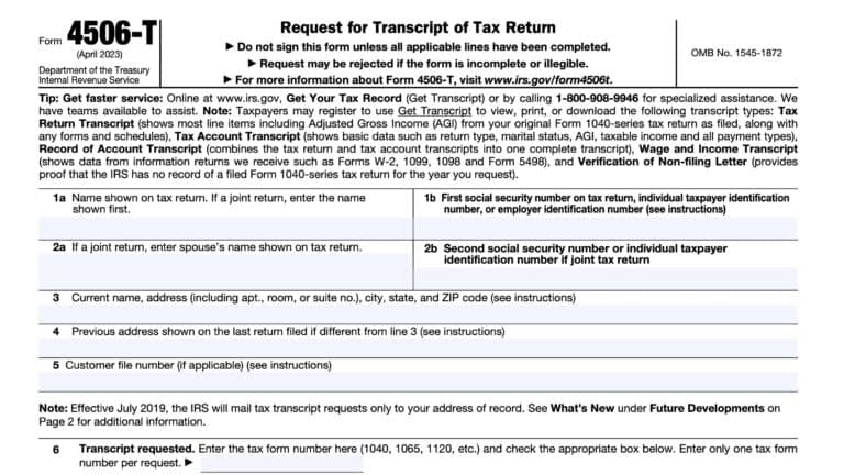 Form 4506-T: Request for Transcript of Tax Return
