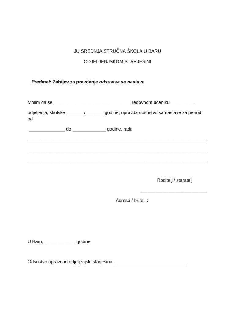 Zahtjev Za Pravdanje Izostanaka | PDF