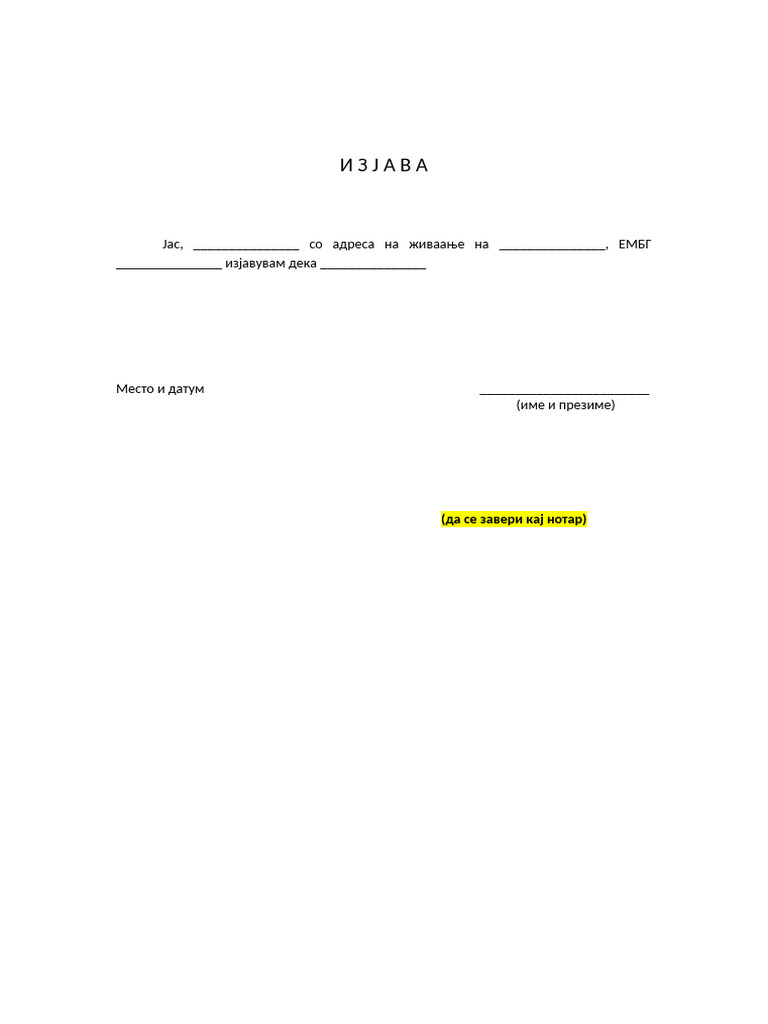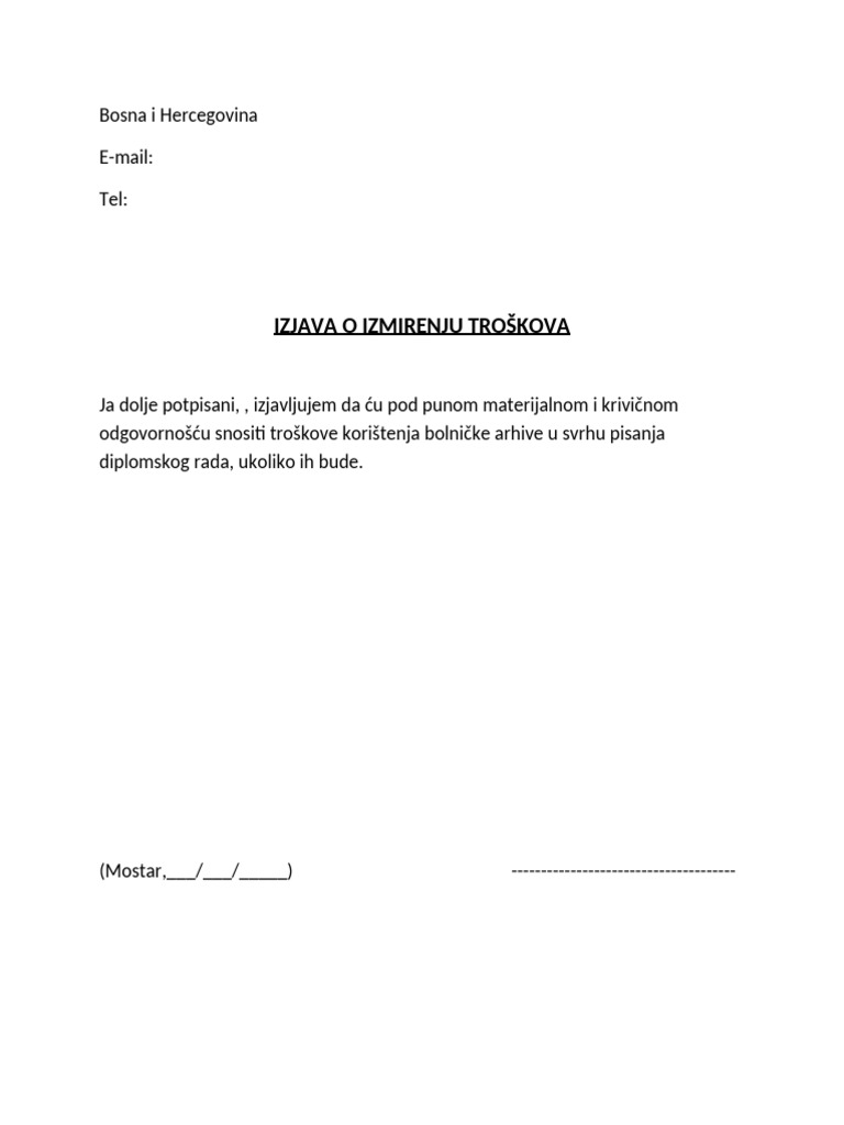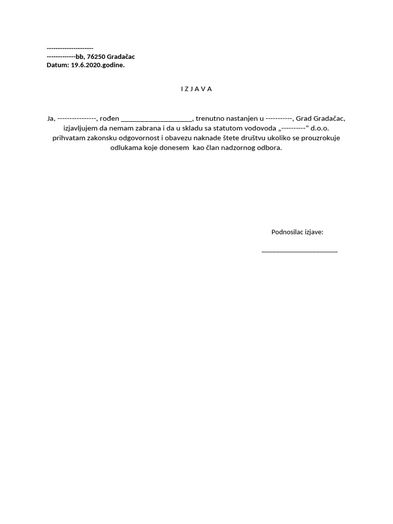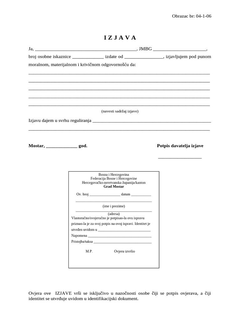 Izjava (Vlastita) - Opcina Ilidza | PDF