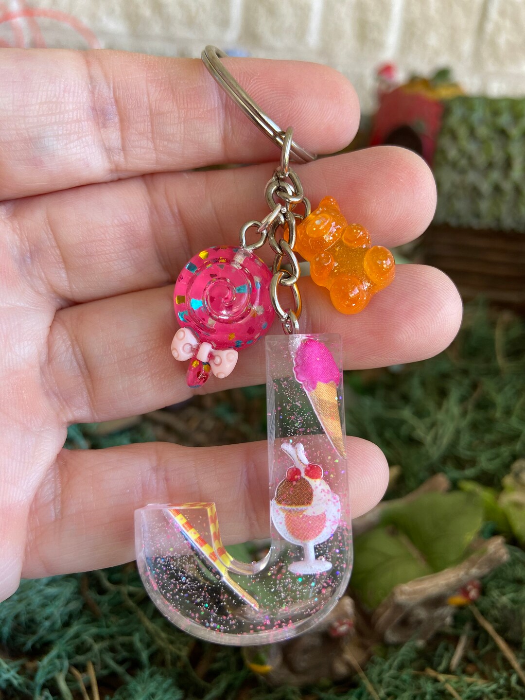 Alphabet Charm J Keychain Letter Keychain Resin Keychain | Etsy UK