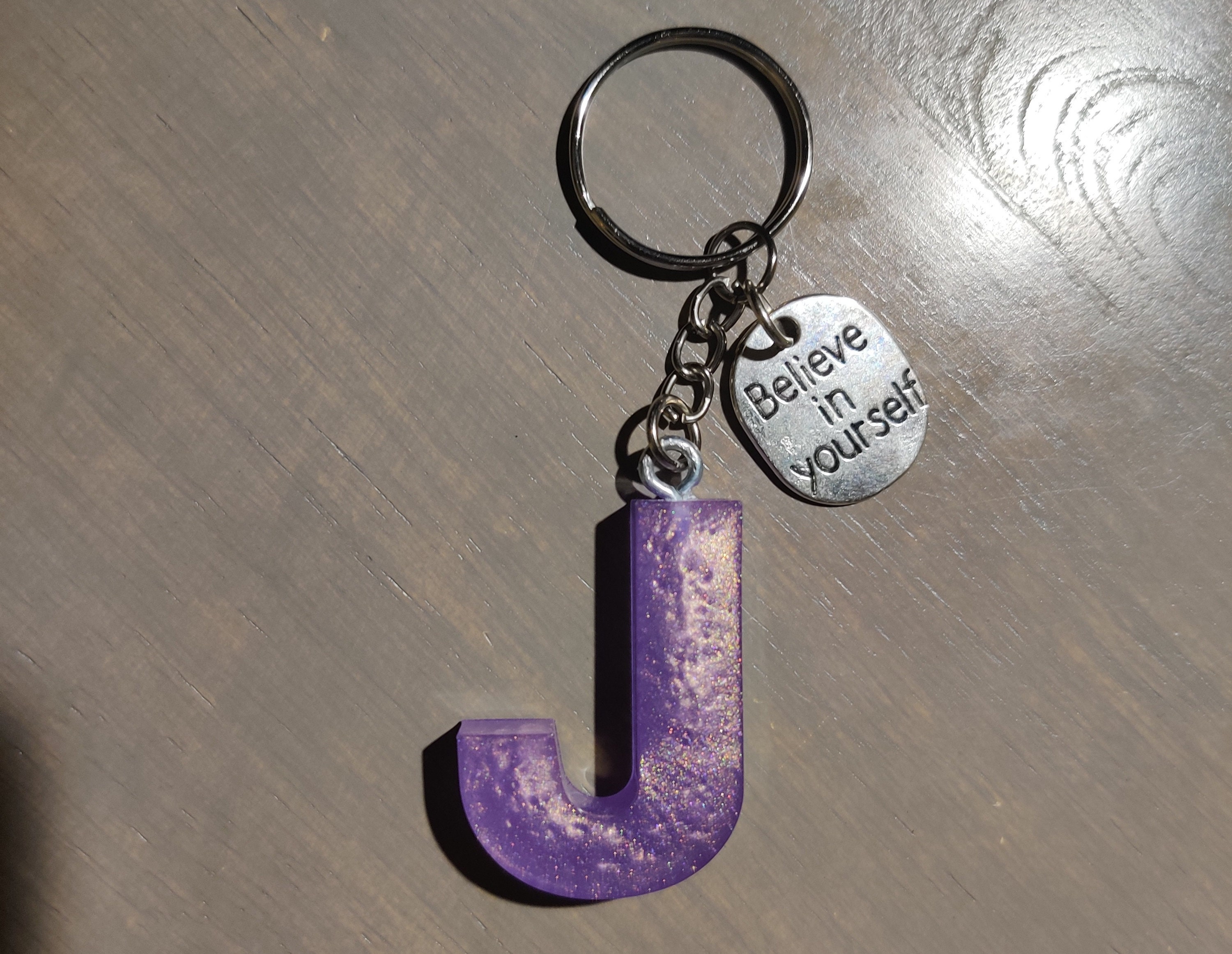Letter J Purple Resin Keychain - Etsy