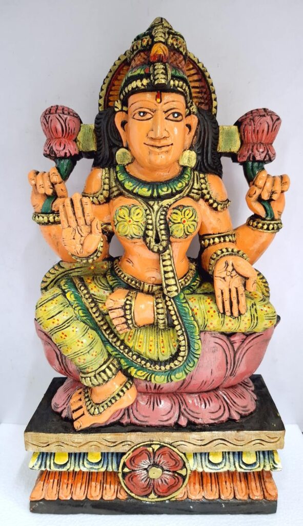 Wooden Lakshmi Statue | Indian Wooden Sculpture | JLine Arts