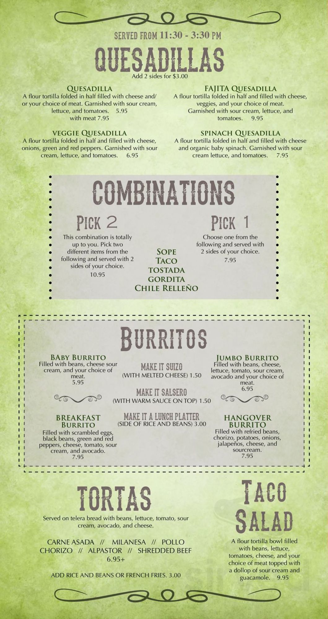 Menu - Bartlett IL's JC's Mexican Restaurant | Sirved