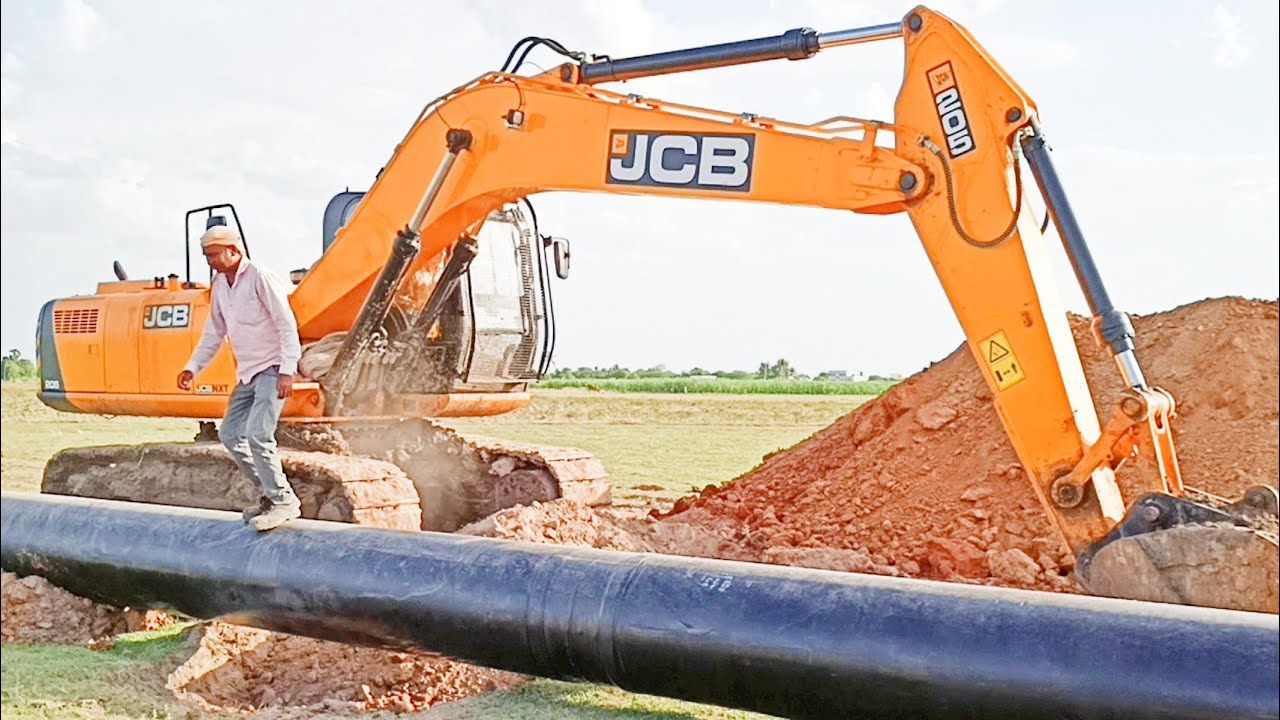 JCB INDIA | Carries large cement pipe by JCB 3DX Machine | Concrete ...
