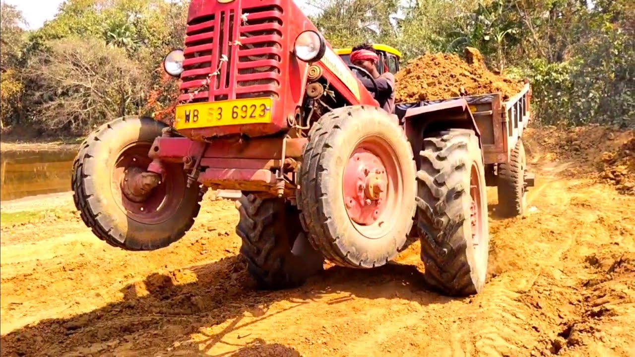 New Jcb 3dx Machine Loading Red Mud In Old John Deere And Mahindra ...