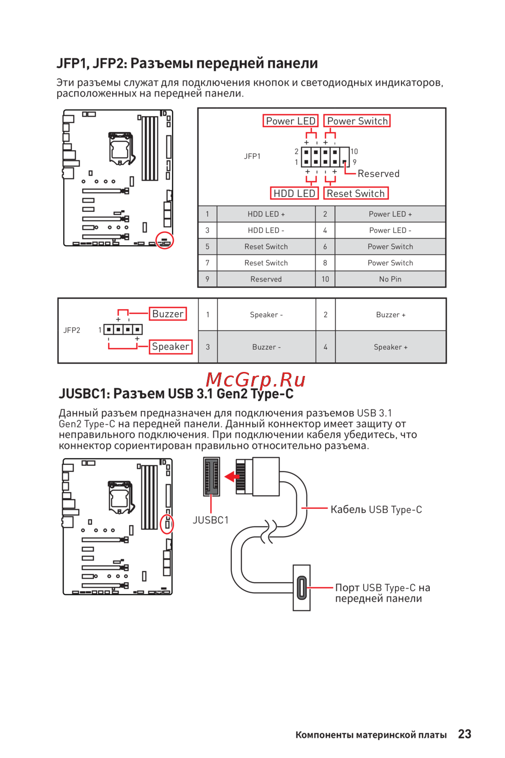 MSI A520M-A PRO [11_20] Jfp1 jfp2 разъемы передней панели | PDF