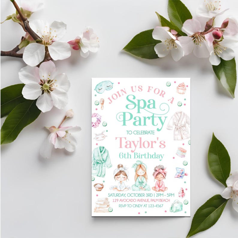 Spa Party Birthday Invitation, Pamper Glam Day Party Invite, Sleepover ...