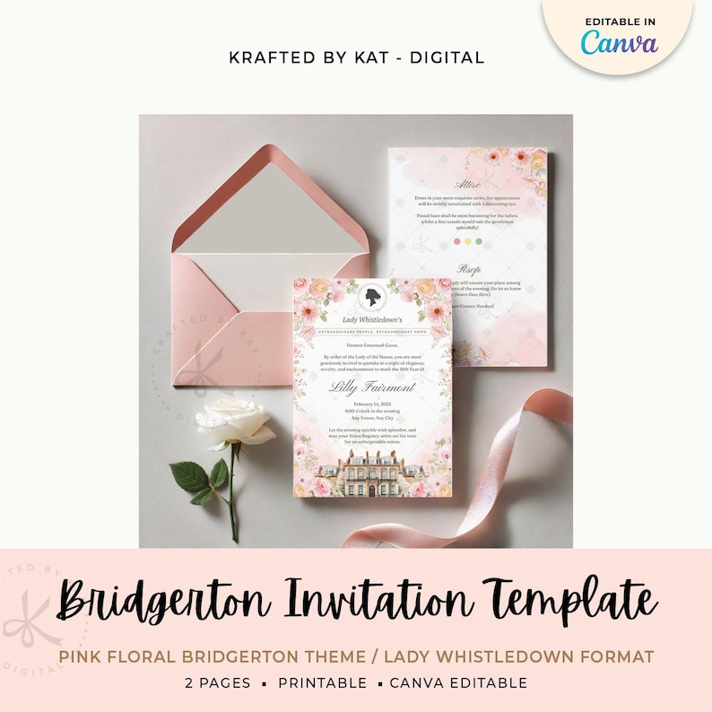 Bridgerton Birthday Canva Invitation Lady Whistledown Template 5x7 ...