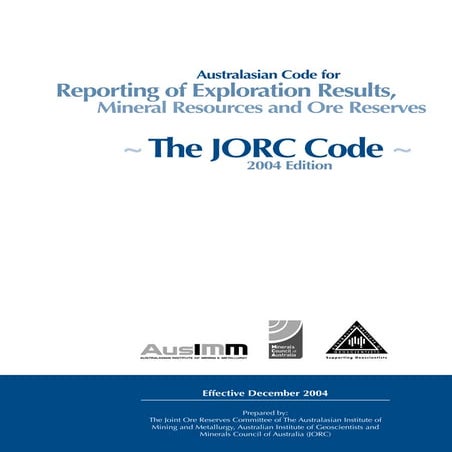 (PDF) The JORC Code 2012 Edition Australasian Code for Reporting of ...