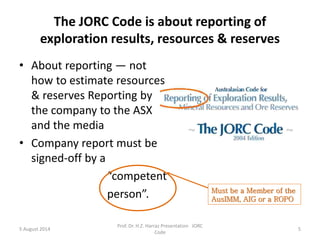 PPT - The implications of the new JORC Code (2012) with regard to ...