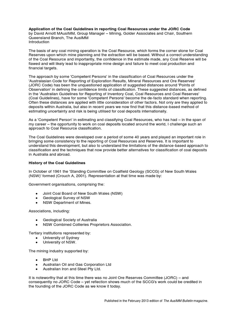 (PDF) The JORC Code Review: Its Scope And Future Direction?