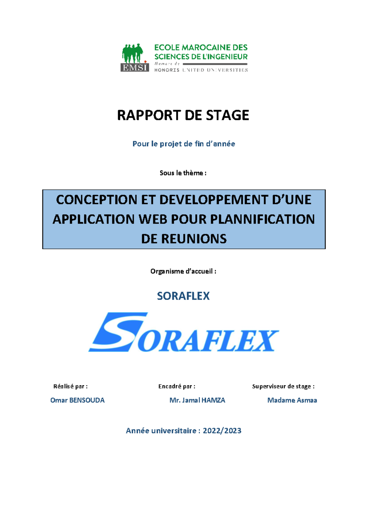 RAPPORT DE STAGE : CONCEPTION D'UNE APPLICATION WEB POUR SORAFLEX - Studocu