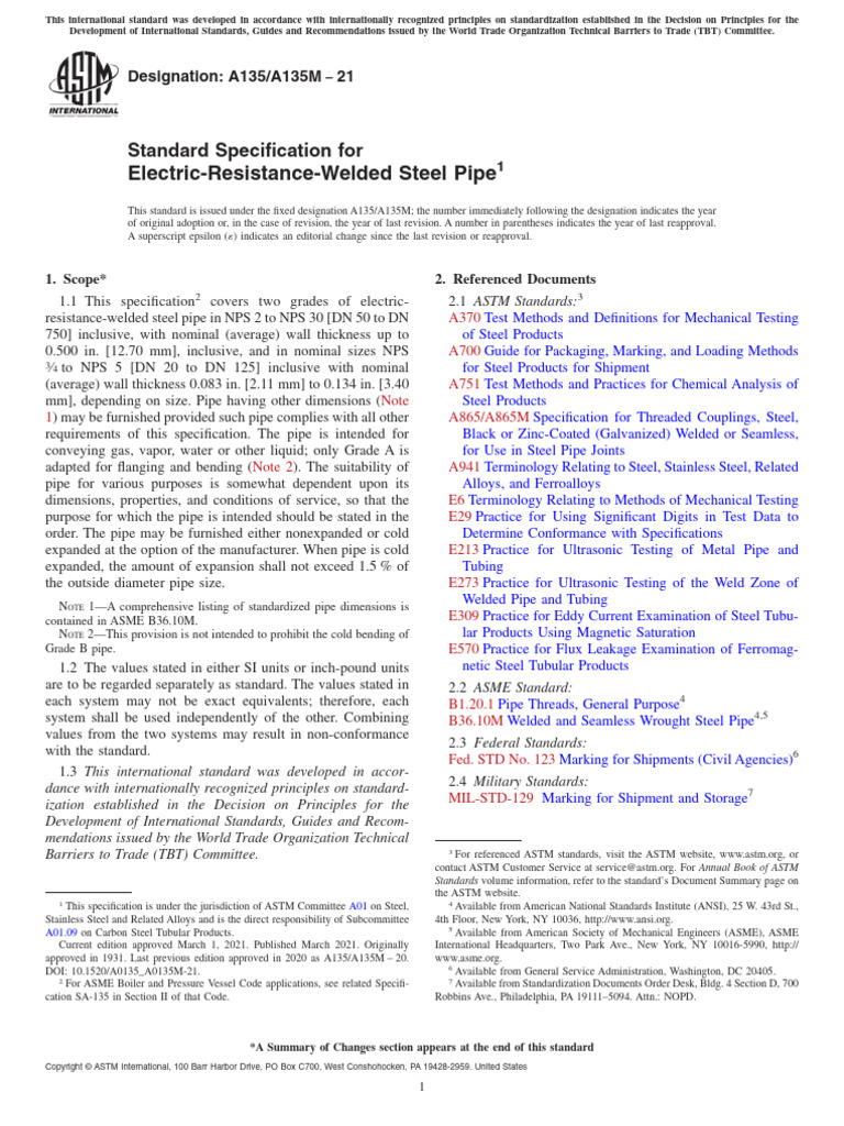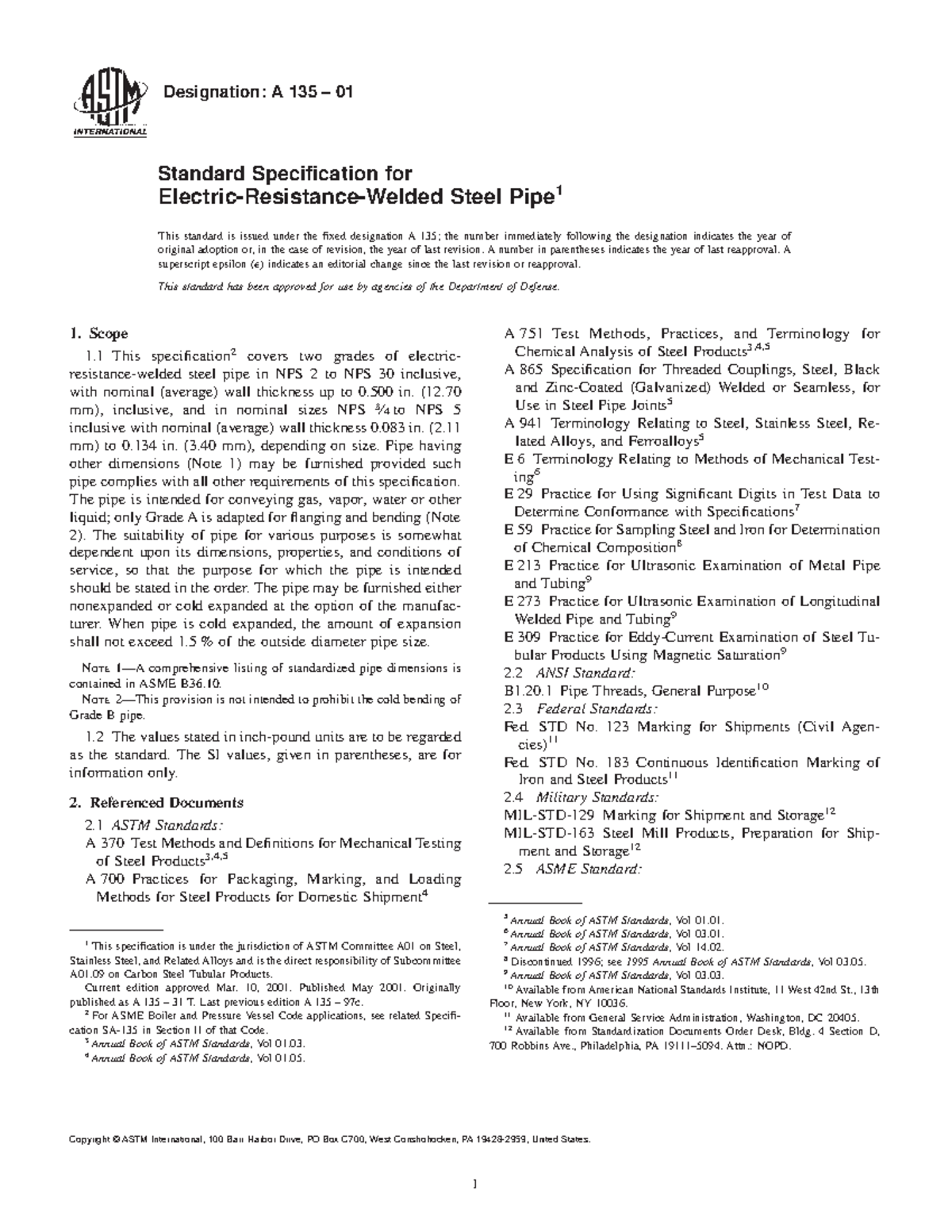 A135 - Especificación material - Designation: A 135 – 01 Standard ...