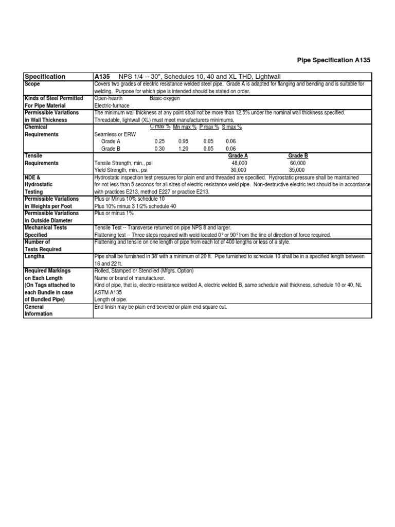 ASTM A135 - ASTM A135 Grade A/B Steel Pipe Specification